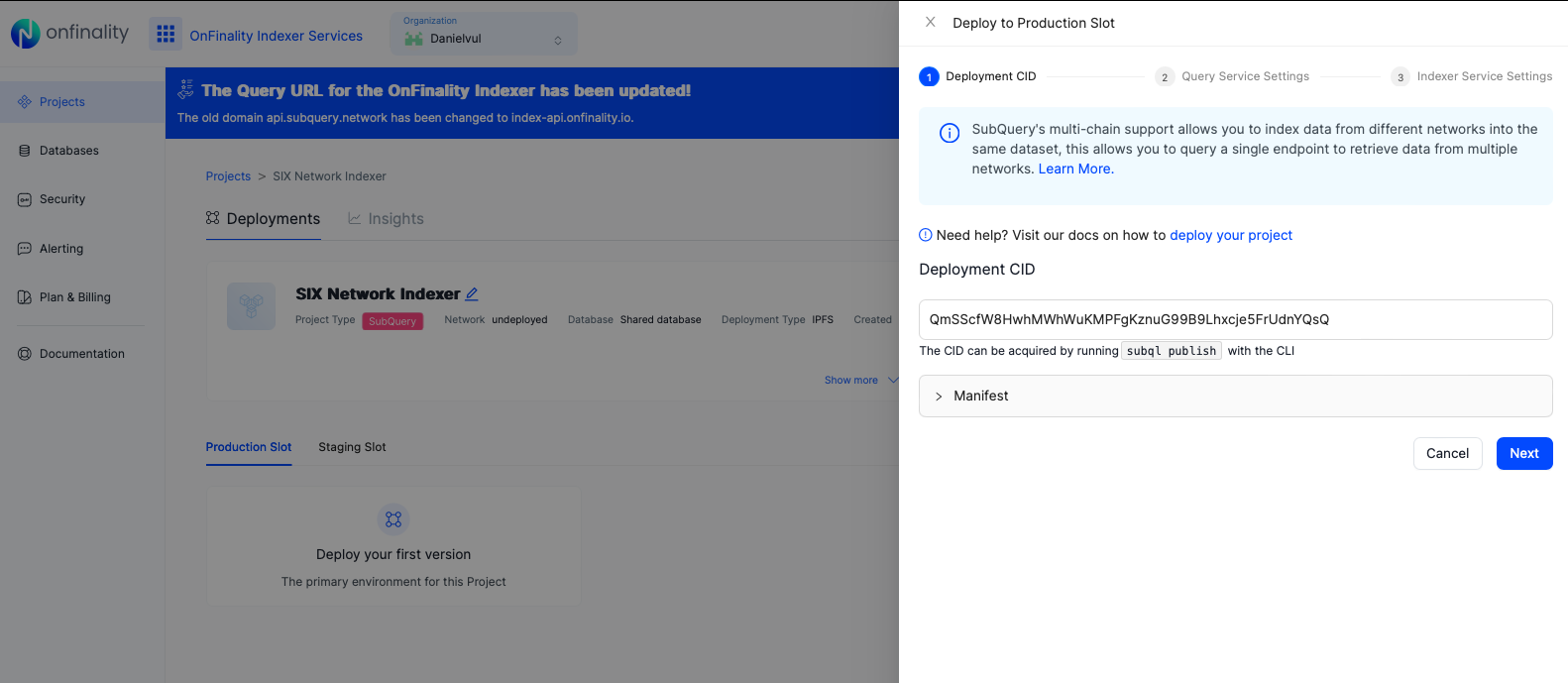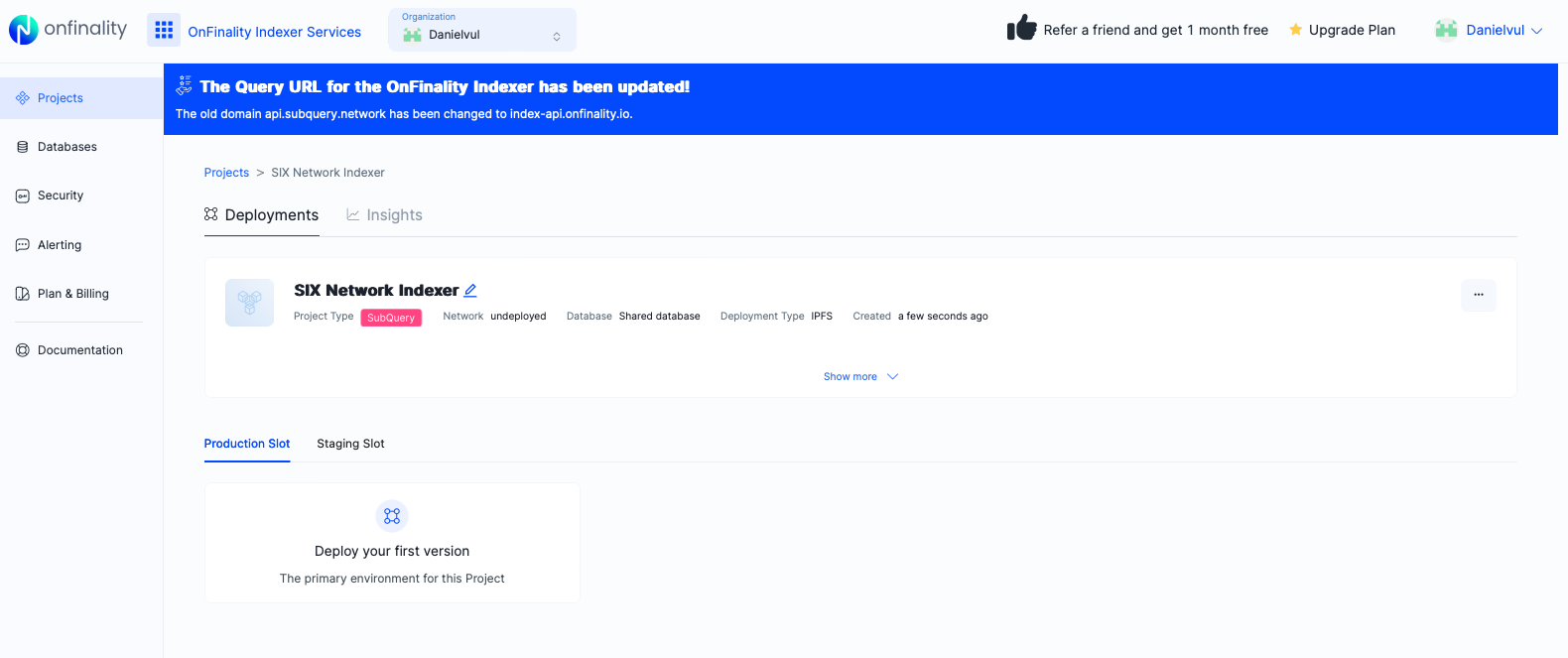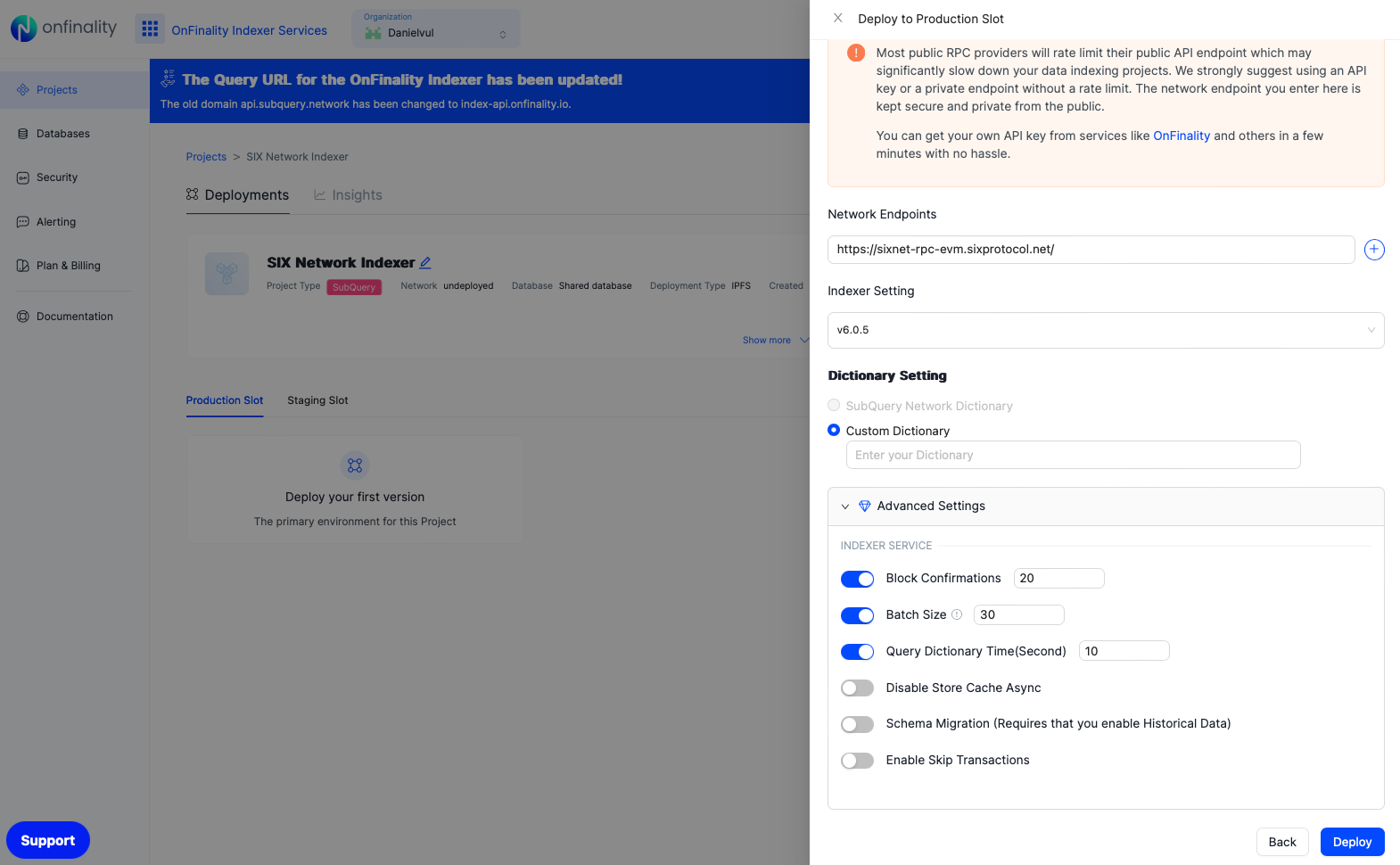 Deploy a SIX Network SubQuery Indexer with OnFinality