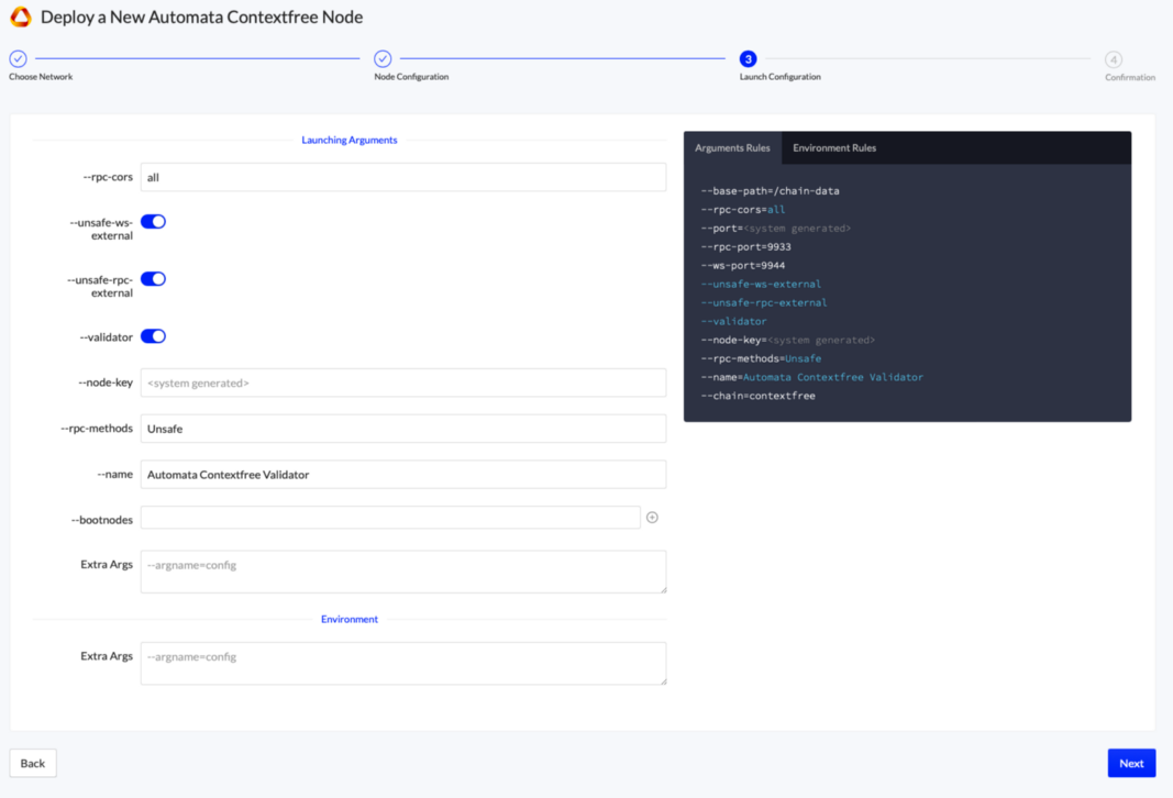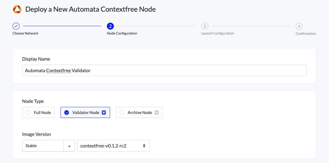 Next, review the node’s Launch Configuration. The recommended settings are usually sufficient, but we recommend comparing with the Automata ContextFree documentation to be certain.