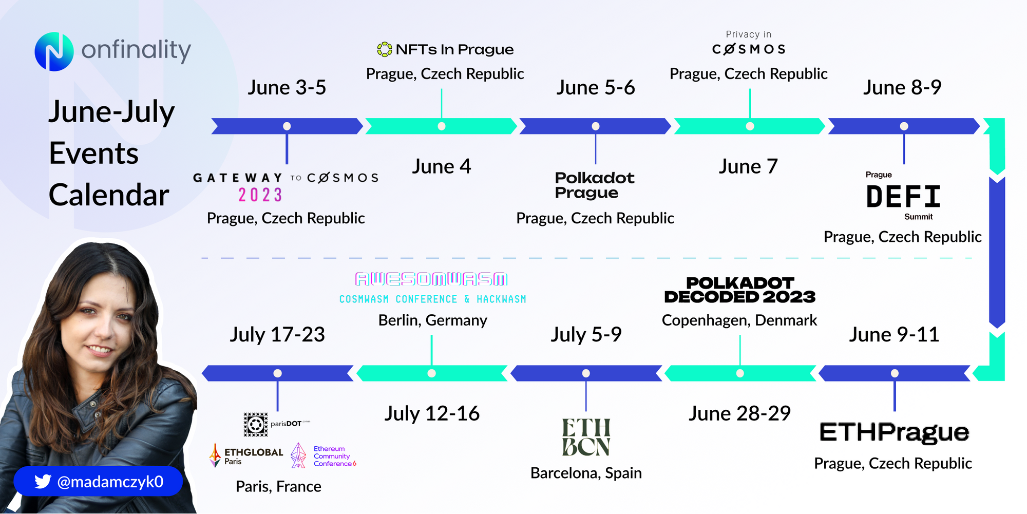 This June, our Technology Evangelist, Marta Adamczyk, is embarking on a trip across Europe to share OnFinality’s latest innovations with web3 developers around the world!