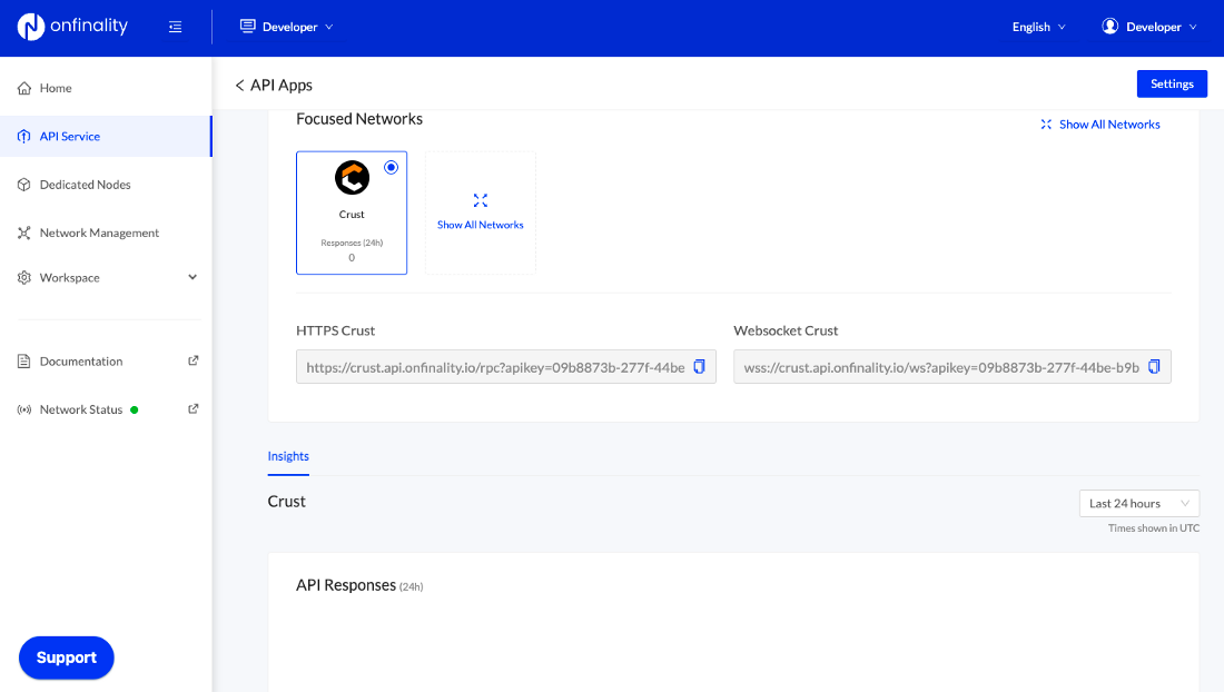 Log in to the OnFinality app to access the Enhanced API Service for Crust now!