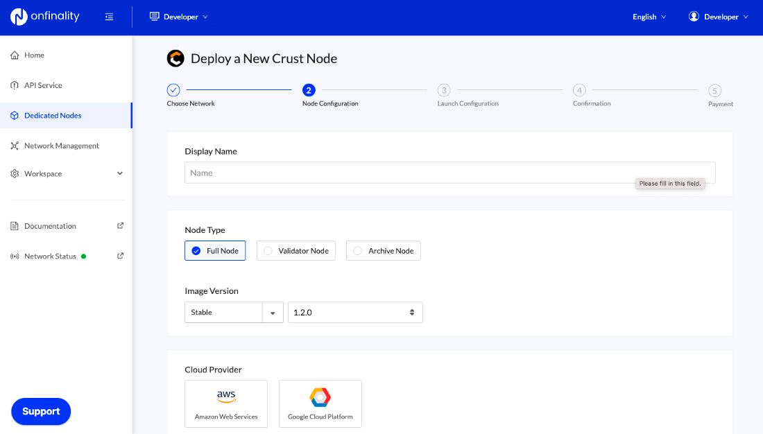 In addition, OnFinality also provides the ability for participants in the Crust ecosystem to rapidly deploy and manage nodes via any of our supported cloud providers such as Amazon Web Service (AWS), Google Cloud Platform (GCP) and Alibaba Cloud.