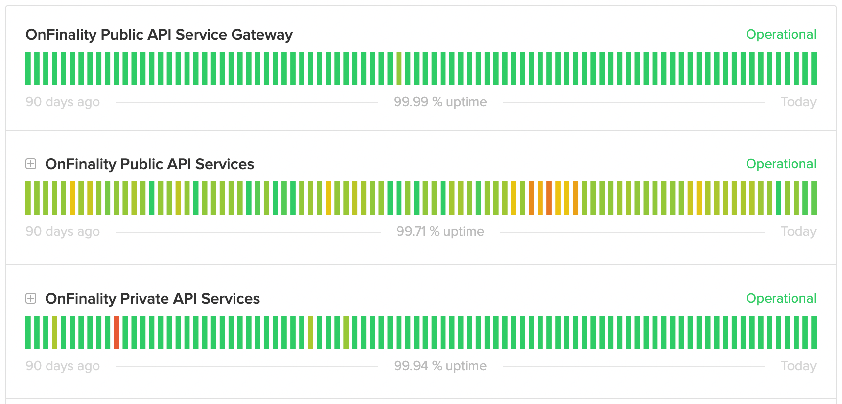 You can follow along with our target uptime by viewing the live numbers on our status page (https://status.onfinality.io/).