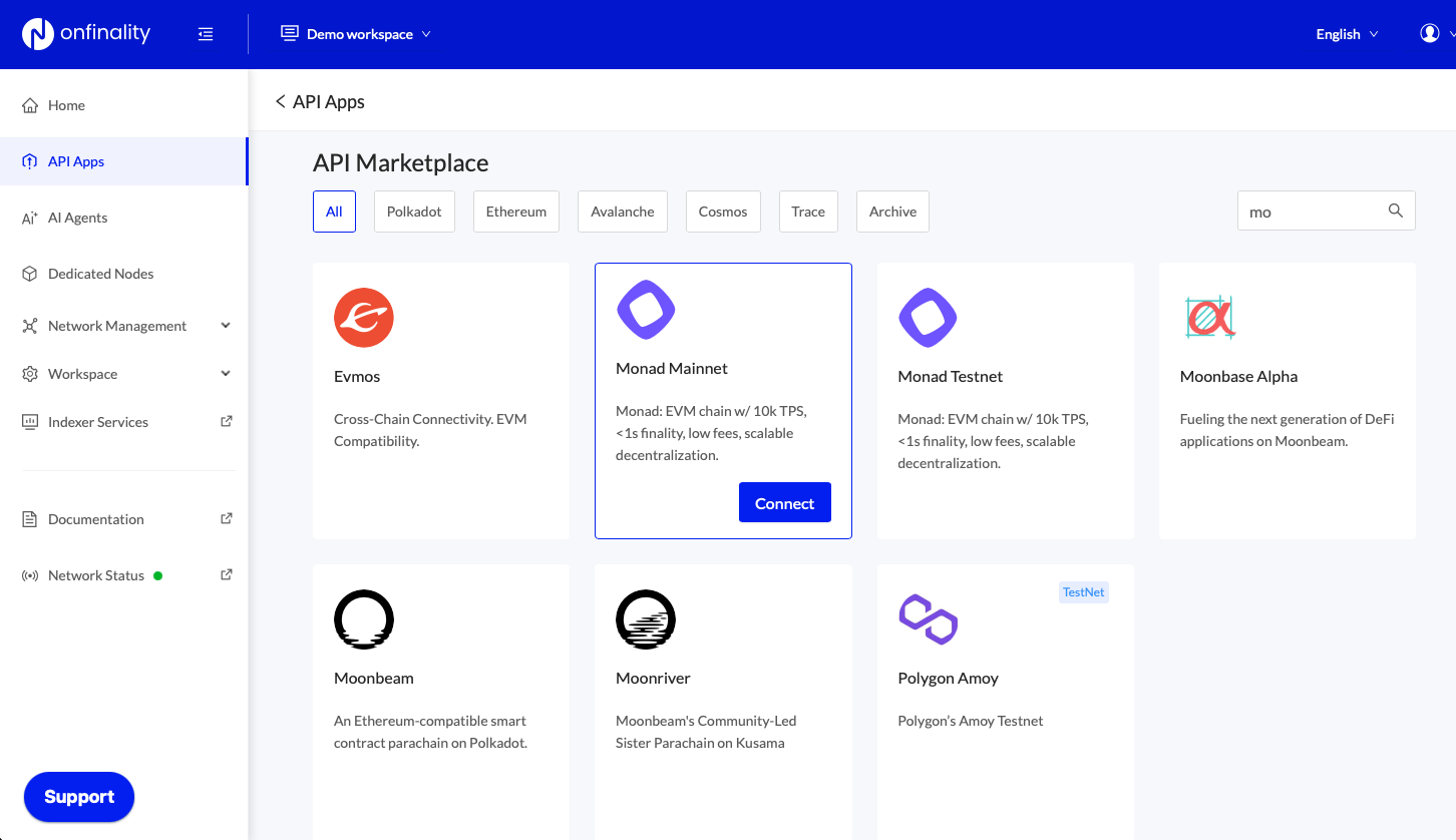 Developers can connect to Monad using OnFinality’s Dashboard and public RPC endpoints: