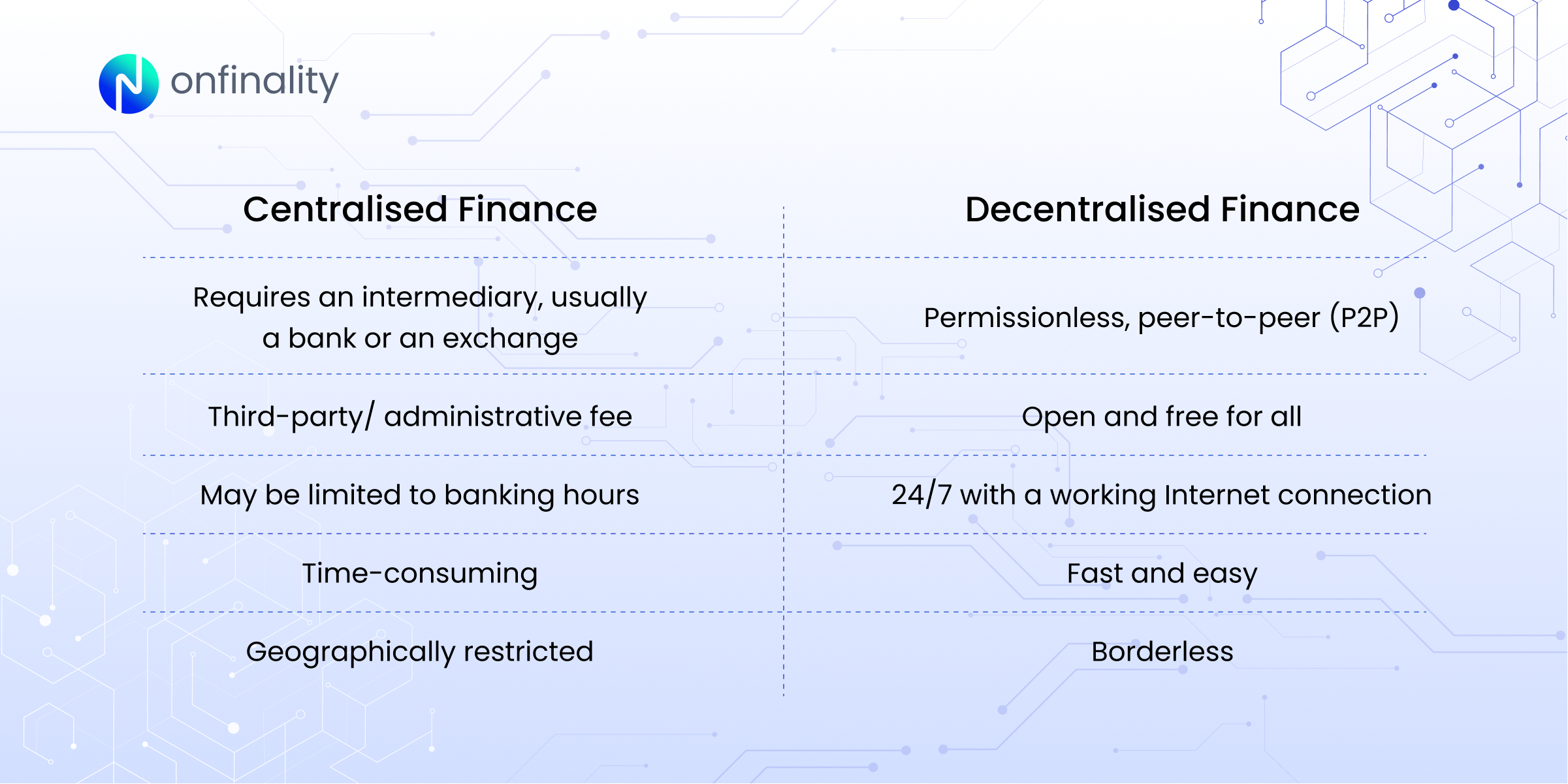Centralised Finance vs Decentralised Finance
